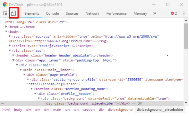 1. Правой клавишей мыши вызвать меню и нажать команду «посмотреть код». В открывшемся окне нажать на иконку мобильного телефона в левом верхнем углу. Данный способ хорош тем, что вы можете протестировать страницу на разных разрешениях — от Galaxy S5 (360x640 px) до iPadPro (1024x1336 px). Переключайтесь между разрешениями экрана, как показано на скриншоте.